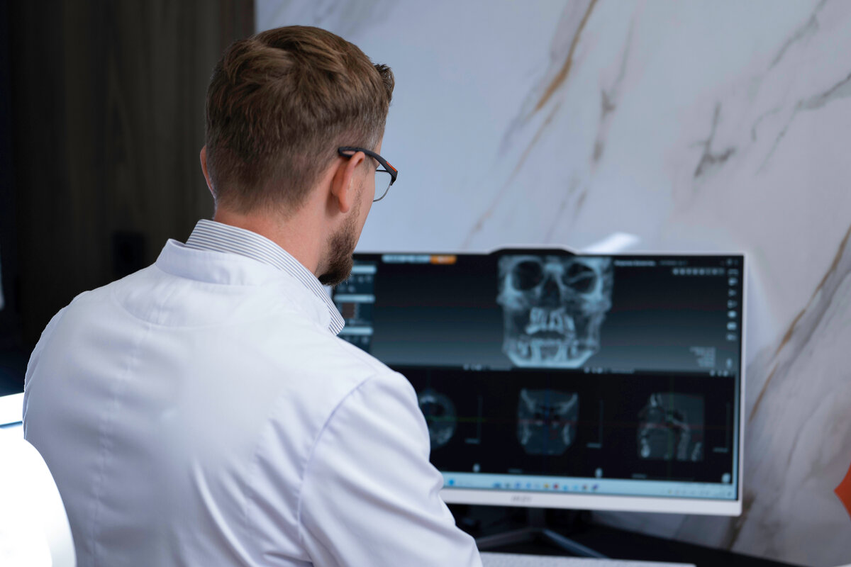➡️ Планирование на компьютере. Врач делает снимок челюсти, на основе которого создает виртуальную 3Д-модель (3D-модель). На ней заранее видно, куда и под каким углом встанут штифты, как будет выглядеть будущий мост. Это позволяет избежать ошибок и сюрпризов в процессе.